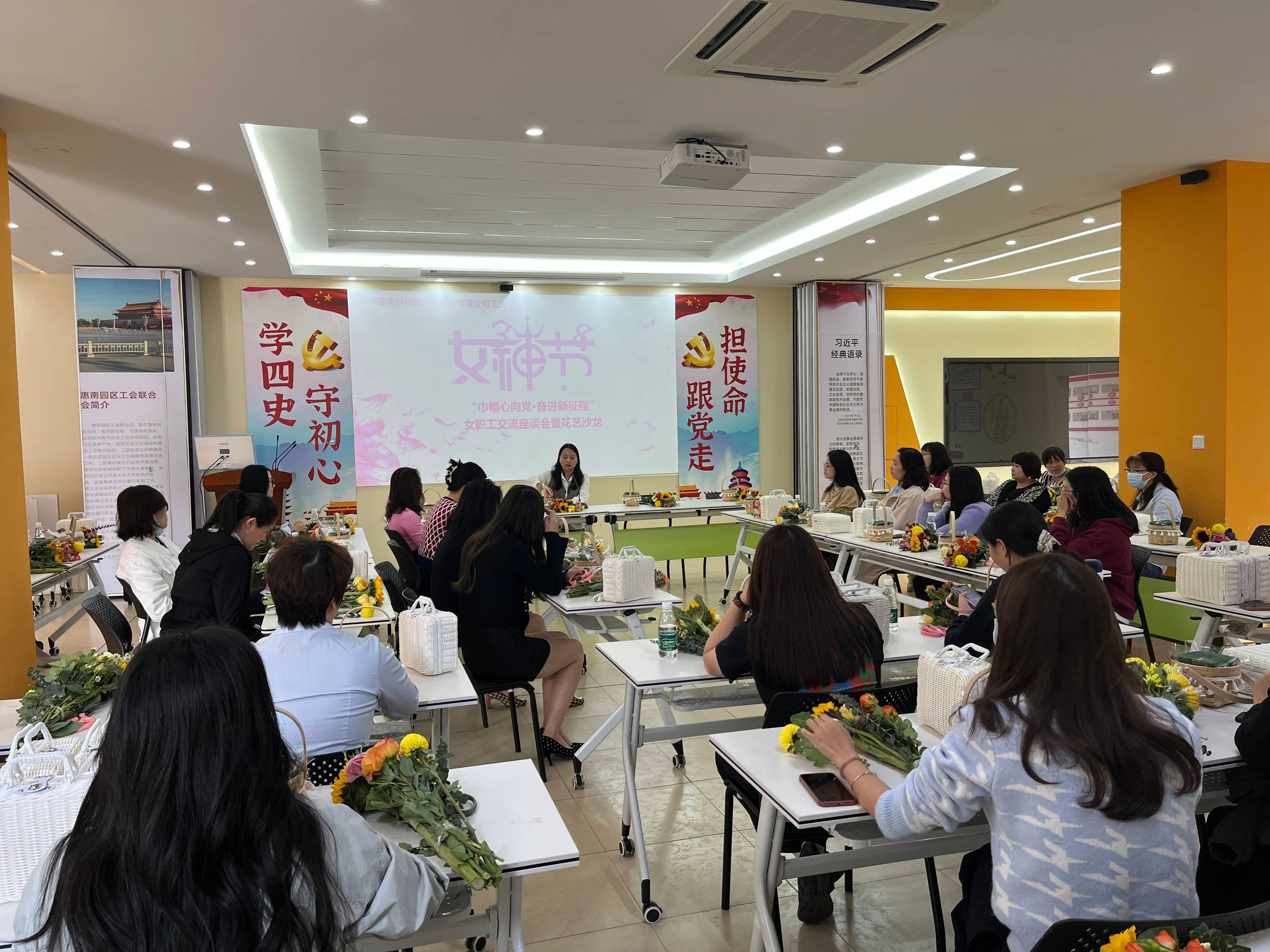 為營造三八國際勞動(dòng)?jì)D女節(jié)活動(dòng)氛圍,豐富女職工的業(yè)余生活,提高女職工陶冶身心生活藝術(shù)。3月7日下午,投開公司工會(huì)在惠南黨群服務(wù)中心舉辦“巾幗心向黨·奮進(jìn)新征程”主題座談會(huì)暨花藝沙龍。惠南投開公司工會(huì)會(huì)員40余人參加活動(dòng)。
