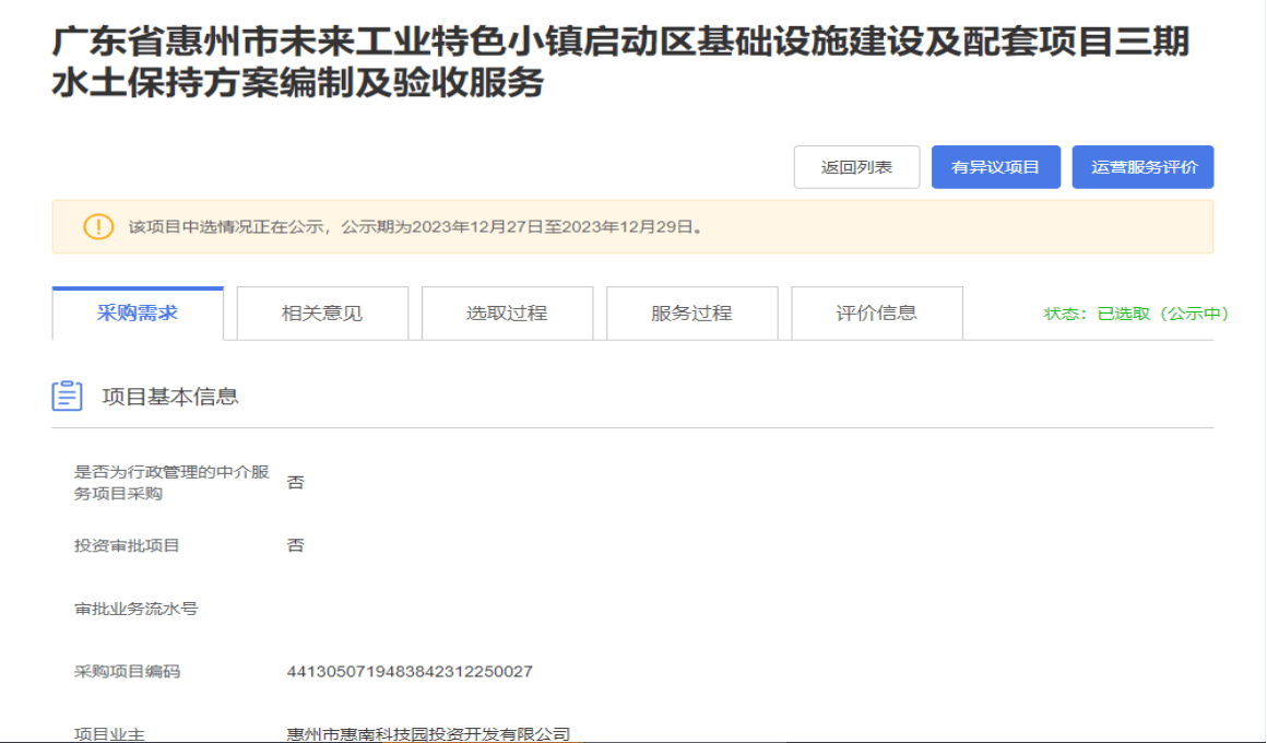 【招標(biāo)公示】廣東省惠州市未來(lái)工業(yè)特色小鎮(zhèn)啟動(dòng)區(qū)基礎(chǔ)設(shè)施建設(shè)及配套項(xiàng)目三期水土保持方案編制及驗(yàn)收服務(wù)