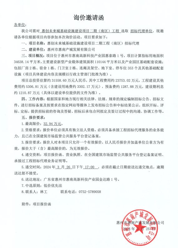 惠創(chuàng)未來城基礎設施建設項目二期工程(南區(qū))招標代理服務