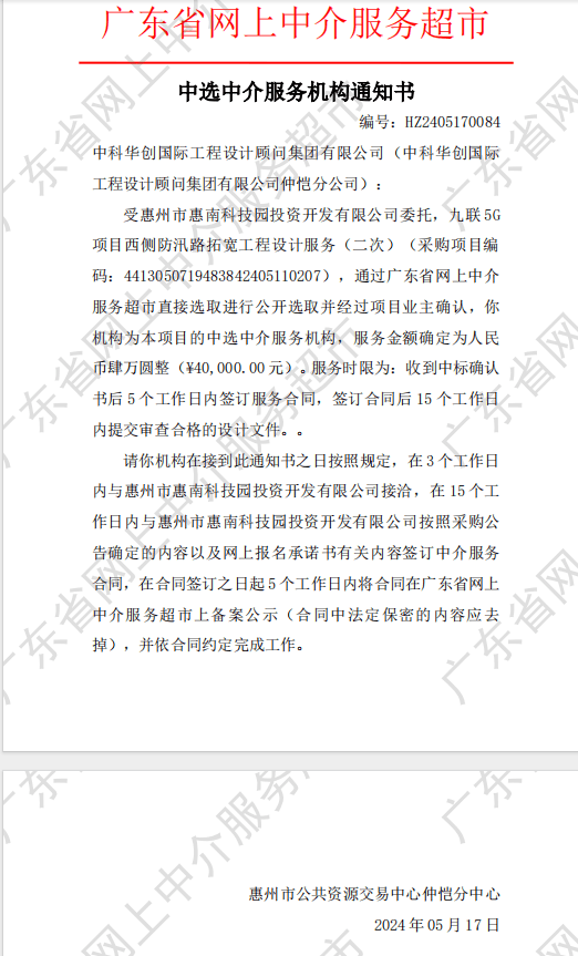 【中選公示】九聯(lián)5G 項(xiàng)目西側(cè)防汛路拓寬工程設(shè)計(jì)服務(wù)(二次)