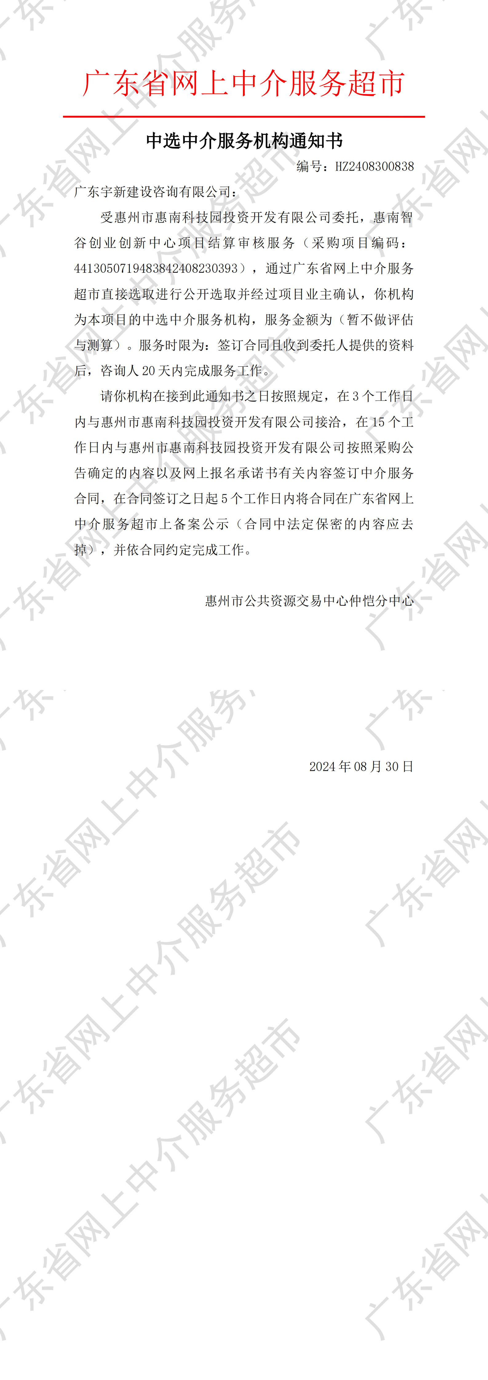 【中標通知】惠南智谷創(chuàng)業(yè)創(chuàng)新中心項目結(jié)算審核服務(wù)