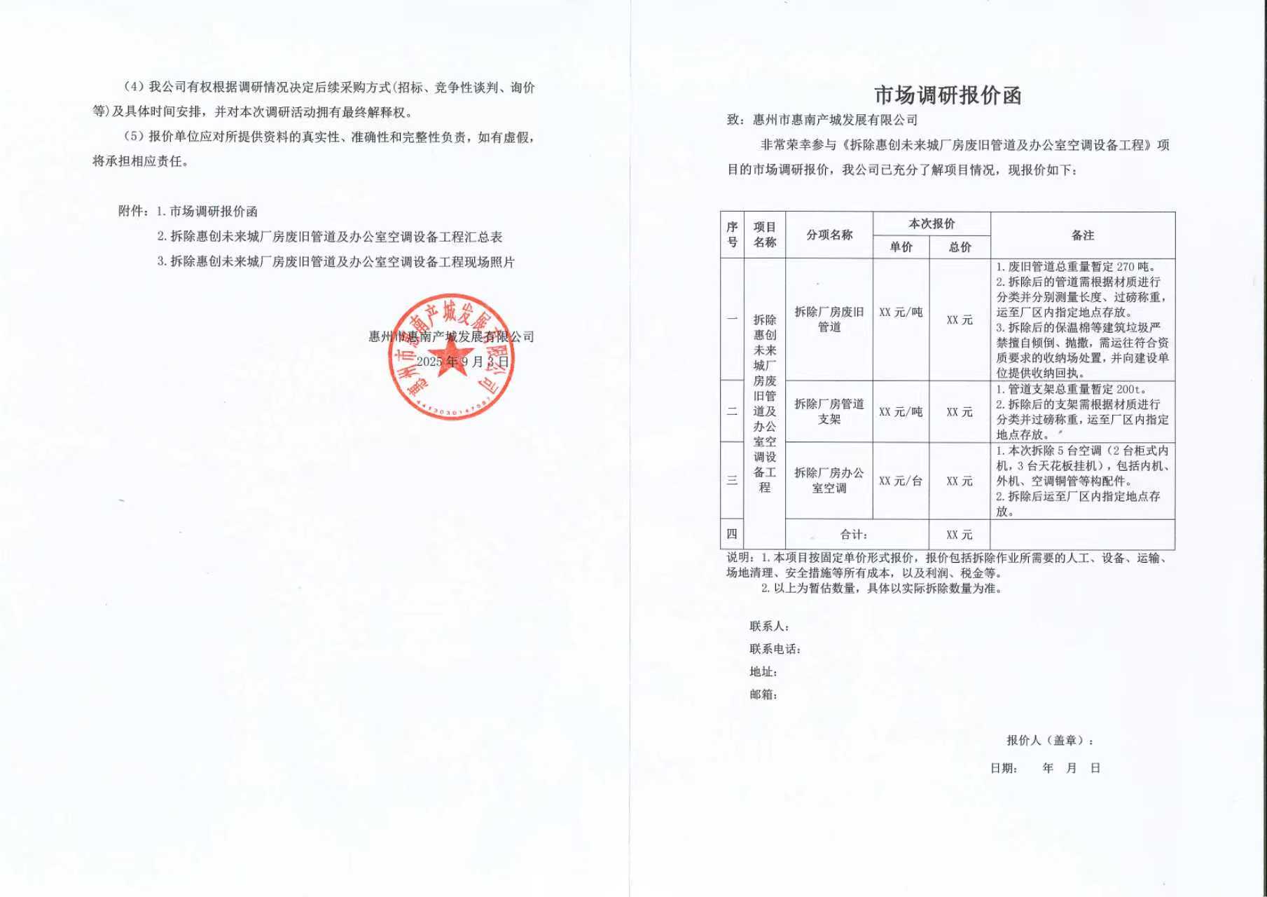 附件2:拆除惠創(chuàng)未來(lái)城廠房廢舊管道及辦公室空調(diào)設(shè)備工程匯總表.xlsx